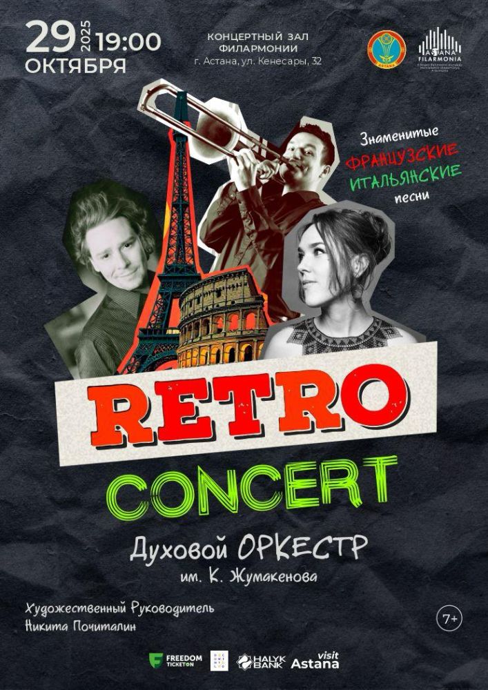 29 қазан күні сағат 19:00-де Еркеғали Рахмадиев атындағы Мемлекеттік академиялық филармонияның концерт залында тыңдарман қауымға ерекше музыкалық кеш – «RETRO CONCERT» ұсынылады.