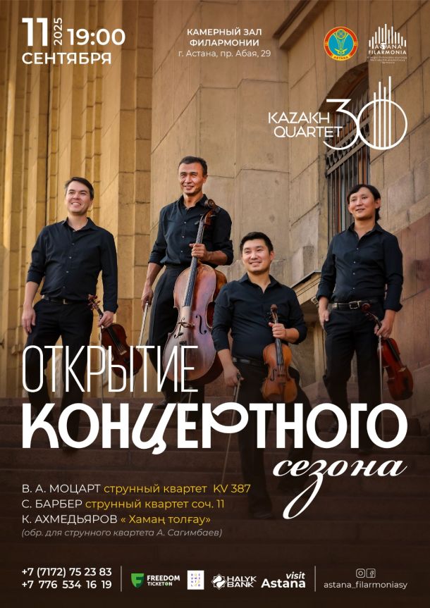 2025 жылдың 11 қыркүйегінде сағат 19:00-де Еркеғали Рахмадиев атындағы Мемлекеттік академиялық филармонияның Камералық залында жаңа концерттік маусымның салтанатты ашылуы өтеді.