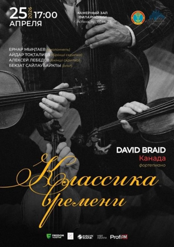 25 сәуір күні сағат 17:00-де Е.Рахмадиев атындағы Мемлекеттік академиялық филармонияның Камералық залында (Абая даңғылы, 29) бірегей камералық музыка концерті өтеді. Концертте Ғазиза Жұбанова атындағы Мемлекеттік ішекті аспаптар квартеті мен канадалық пианист-импровизатор Дэвид Брейд бір сахнада өнер көрсетеді.