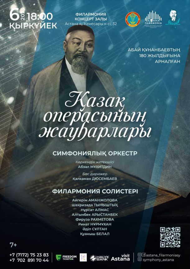 2025 жылдың 6 қыркүйегінде сағат 18:00-де Еркеғали Рахмадиев атындағы Мемлекеттік академиялық филармонияның Концерт залында ұлы ақын, ойшыл, ағартушы Абай Құнанбайұлының 180 жылдық мерейтойына арналған ерекше концерт өтеді.