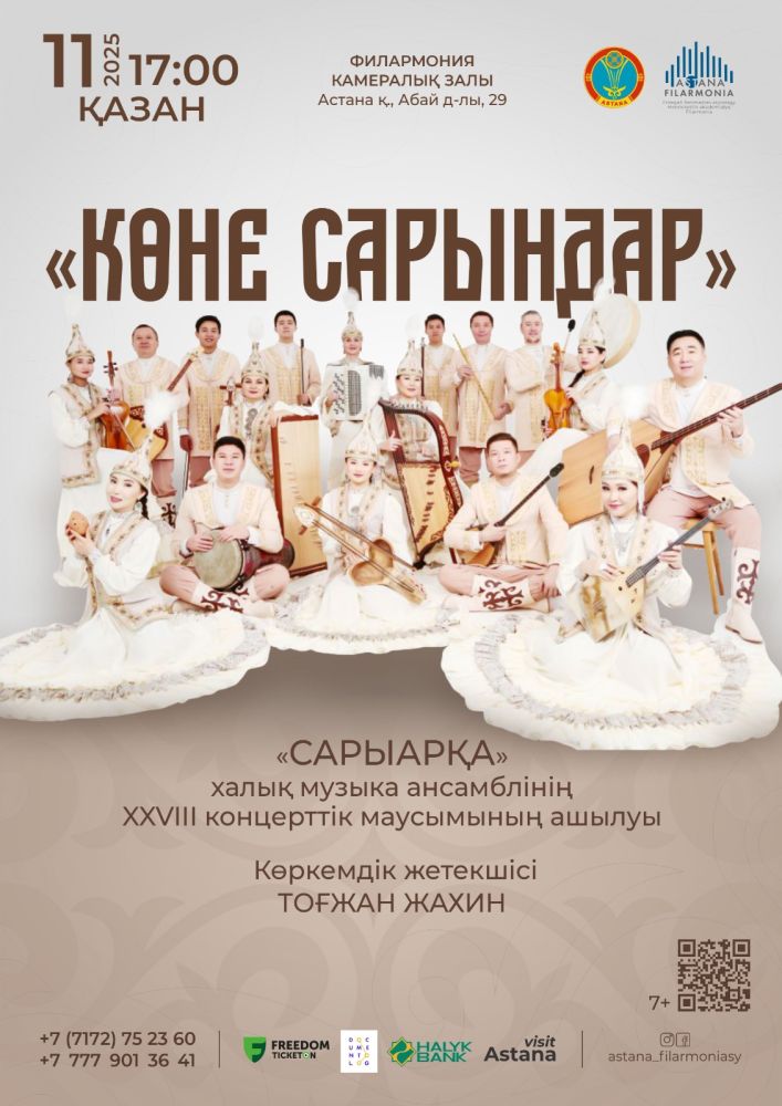2025 жылғы 11 қазан күні сағат 17:00-де Астана қаласындағы филармонияның Камералдық залында Е. Рахмадиев атындағы Мемлекеттік академиялық филармонияның «Сарыарқа» халық музыка ансамблі «Көне сарындар» атты концертін ұсынып, өзінің XXVIII концерттік маусымын ашады.